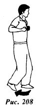 Правую ногу переместите назад (рис.208), после чего повернитесь направо на 180°, принимая переднюю боевую стойку (рис.209).
