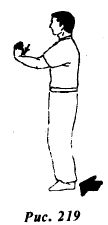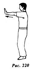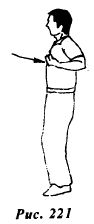 Сожмите кисти обеих рук в кулаки и отведите назад к груди (рис.221).