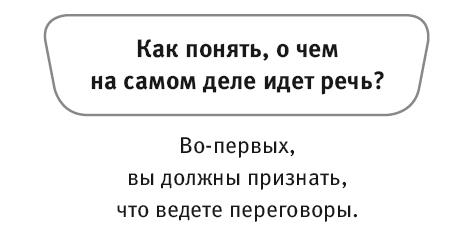 За всеми прямолинейными решениями скрываются другие, потенциально более серьезные варианты: если выразим несогласие открыто, останемся ли друзьями? Можем ли мы позволить себе заплатить столько за дом? Справедливо ли забирать детей именно мне, если у меня так много работы? Не достигнув принципиального согласия в том, что мы обсуждаем на самом деле и как мы должны это обсуждать, добиться прогресса трудно.