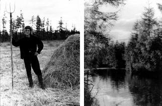 На заготовке сена в колымской тайге. Из-за гнуса работать можно было только в накомарниках, справа – знаменитая река Колыма.
