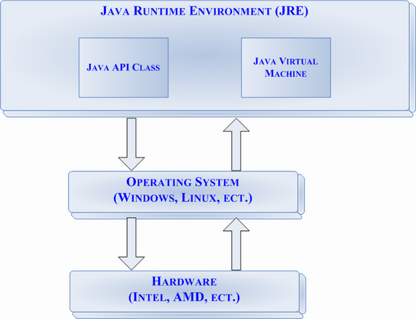 Java Runtime Environment, сокращенно JRE – это исполнительная среда Java, в которой выполняются программы, написанные на этом языке. Среда состоит из виртуальной машины – Java Virtual Machine (JVM) и библиотеки Java классов. По сути это минимальная реализация виртуальной машины, необходимая для исполнения Java приложений, без компилятора и других средств разработки.