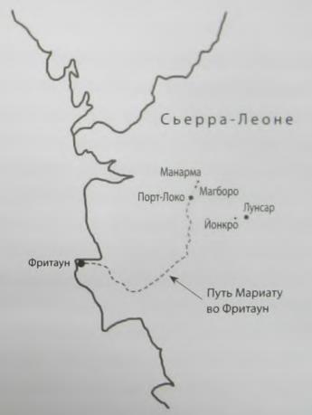 Жилось в Магборо весело: по деревне бегали козы, под ногами путались куры. После обеда я играла в прятки с кузенами и друзьями. Одну из моих подруг тоже звали Мариату. Со дня знакомства мы с ней стали не разлей вода. То, что мы тезки, казалось нам очень смешным; мы с ней вообще много смеялись. Едва оказавшись на ферме, мы с Мариату упросили родных позволить нам работать рядом, чтобы не расставаться ни на минуту. Вечерами мы плясали подбой барабанов и пение соседей. Не реже раза в неделю вся деревня собиралась на представление. Когда подходила моя очередь выступать, я наряжалась в затейливый красно-черный костюм и изображала дьявола. Сперва я танцевала, а потом гонялась за зрителями, стараясь хорошенько их напугать.