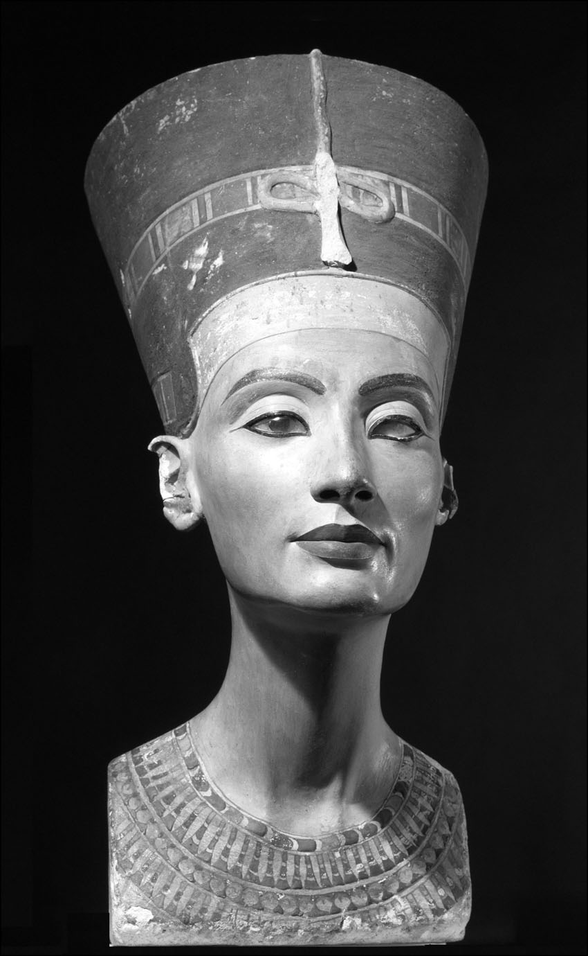 Юный Аменхотеп IV, занявший трон приблизительно в 1351 году до н. э., души не чаял в красавице-жене: их любви посвящены многочисленные фрески и рельефы, а также письменные тексты. Фараон, называвший жену «Усладой своего сердца», обращался к ней в одном из писем: «Любовь моя, Королева Юга и Севера, Возлюбленная