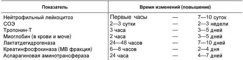 Наиболее существенные гематологические и биохимические изменения при инфаркте миокарда