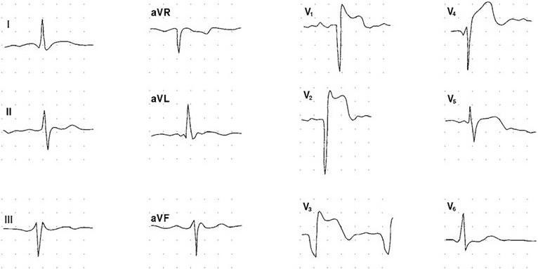 Рис. 1.6. ЭКГ-изменения у больного в острый период переднеперегородочного инфаркта миокарда.