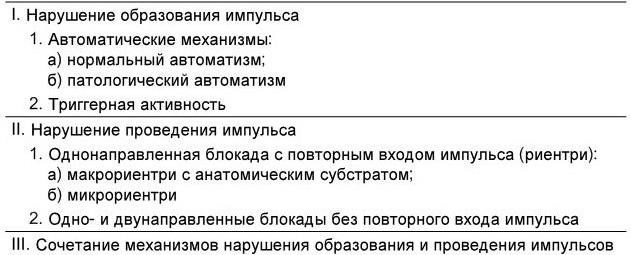 Классификация. Широкое распространение нарушений ритма обусловлено многообразием этиологических факторов, патогенетических механизмов и локализации в сердце очагов аритмогенеза. Это осложняет создание единой классификации и делает ее громоздкой.