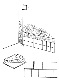 Облицовку выполняют так: установив первую плитку первого или нижнего ряда, к ней ставят вторую, но не вплотную к первой, а вставляют между ними два гвоздя или скобку. Точно так же устанавливают и последующие плитки этого ряда. Второй и последующие ряды выполняют точно так же, только гвозди или скобки ставят снизу и сбоку каждой плитки.