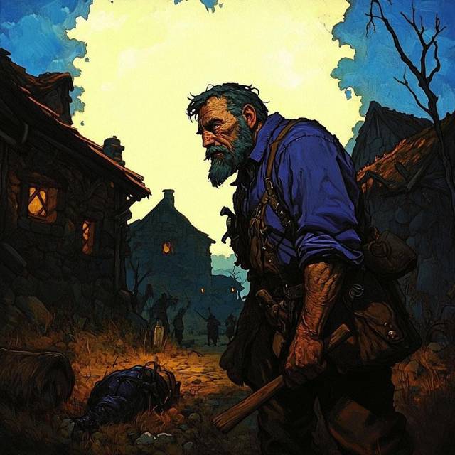 Мой воин лёгким и быстрым движением оказался возле старосты и ударил его под рёбра. Старик упал, закашлялся. Но тут же начал бодро подниматься.