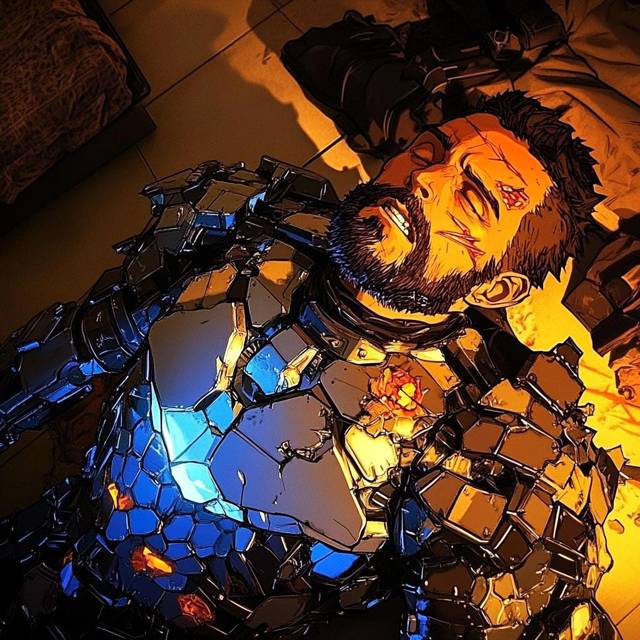 А вот снять обмундирование с Лукреция оказалось довольно сложно. Техномагический доспех на нём был очень странной модели, как минимум я такого раньше ни разу не видел. Слишком тонкий и к тому же подвижный, как чешуя или кольчуга. Честно говоря, вообще странно, как он смог сдержать