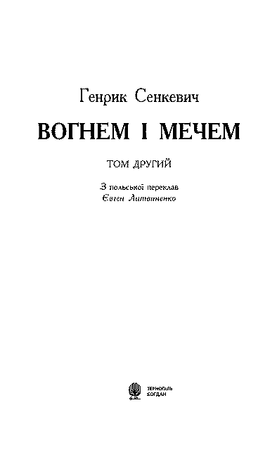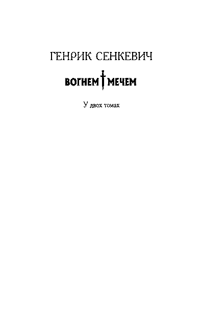 Перекладено за виданням: Henryk Sienkiewicz. Ogniem і mieczem. Powiesc. T. І, II. Panstwowy Instytut Wydawniczy. Warszawa, 1962.