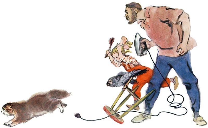 Тут кот совершенно растерялся, заорал и, подняв шерсть дыбом, а хвост трубой, бросился под диван и не вылезал оттуда до тех пор, пока не приехала соседка.