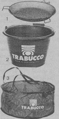 1 — сито для размельчения комков прикормки; 2 — жесткое ведро; 3 — мягкое ведро.