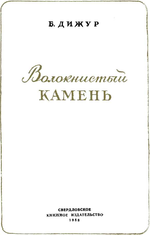 О чем эта книга? И что это за волокнистый камень? Разве такие существуют? — спросит тот, кто никогда не держал в руках кусочка асбеста. Но если вам доводилось видеть асбест, то вы согласитесь, что такое название очень к нему подходит.