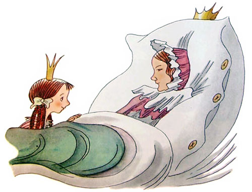 Принцесса Алисия, которая случайно оказалась у двери спальни, чтобы спросить насчёт завтрака, очень-очень встревожилась, когда увидела свою королеву-матушку в таком состоянии, и вызвала колокольчиком Пегги. (Так звали их лорда-постельничего.) Но помня, где стоит бутылочка с нюхательной солью, она влезла на стул и достала бутылочку; а потом она влезла на другой стул, возле кровати, и поднесла бутылочку к носу королевы; а потом она спрыгнула и принесла воды; а потом она снова влезла на стул и смочила королеве лоб, и, короче, когда вошёл лорд-постельничий, этой славной пожилой женщине оставалось только сказать принцессе-доченьке: