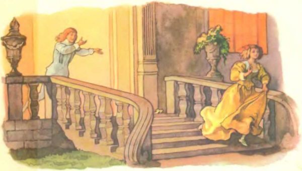 — Побывала бы ты на балу, — сказала одна из сестер, — тебе бы некогда было скучать. Туда приехала принцесса — да какая красивая! Красивей ее никого на свете нет. С нами она была очень любезна, угощала нас апельсинами.