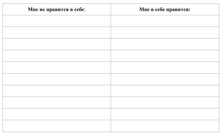 Какой список длиннее? Если длиннее список слева, то тебе нужно серьезно поработать над своей самооценкой. Чаще поддерживай себя и хвали.