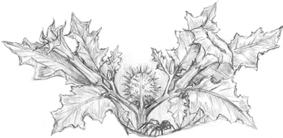 Я уже писала о дурмане в своей первой книге «Ведьма в саду». Это растение я приобрела на блошином рынке совершенно случайно. Продавец назвал его «Лунным кустарником». Когда я посадила дурман у себя в саду и он зацвел, я начала понимать, что это растение особого сорта. В то время мои дети были еще маленькими, поэтому как только я распознала в своем приобретении чрезвычайно ядовитое растение, я тут же убрала его из своего сада магических растений. Лишь спустя много лет на этом месте начало что-то расти.