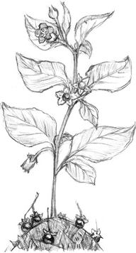 Народные названия красавки – бешеная вишня, безумная ягода, сонная вишня, чертова ягода, пьяный куст. Следует отметить, что именно это растение называли «мандрагорой Гекаты». И мандрагора (Mandragora), и красавка (Atropa beladonna) принадлежат к семейству пасленовых, в состав которого входят также картофель, помидоры, баклажаны, табак и перец чили. Родина красавки – Средиземноморье и Евразия. Она является священным растением трехликой богини Гекаты.