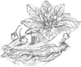 Народные названия – дикий лимон, енотовые ягоды, трава Цирцеи, мужской корень, адамова голова, сонное зелье, пупочник, шишкарник, пустосел, кукушкины сапожки, трава-покрик. Это растение посвящено Афродите, а его родиной является Европа. У мандрагоры длинные, овальные, заостренные на концах листья, имеющие неприятный запах. Это растение цветет весной – бледно-фиолетовыми цветами, которые затем превращаются в круглые, желтые плоды с ароматом ананаса. Эти ядовитые плоды получили название золотых яблок Афродиты.