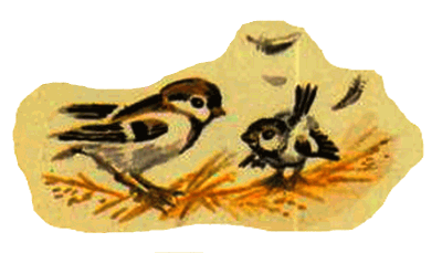 приподнял с земли воробьишку, он подпрыгнул, замахал крыльями — раз, раз, и — на окне!Тут и мама подлетела — без хвоста, но в большой радости, села рядом с ним, клюнула его в затылок и говорит: