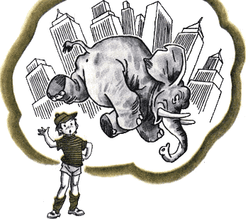— Один раз иду я по Америке, — начал Бирюлькин, — а навстречу мне… слон. Я ка-ак закричал на него! А он ка-ак припустит бежать!.. А я ка-а-ак стрельнул в него разрывной бомбой! Так и разорвало его на мелкие кусочки!.. А потом — лев…