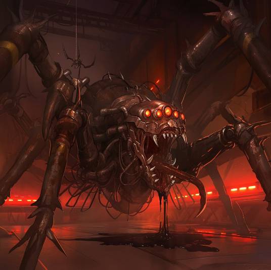 В этот момент нас вновь пытается настигнуть мехалит, ставший полноценным гигантским пауком, на металлическом корпусе которого растет биологическая плоть, свисающая не самыми аппетитными ошметками. Это не только выглядит отвратно, но и в целом как-то неправильно. Почему вообще мехалиту возвращается плоть, да еще именно таким образом?