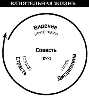 Совесть существенно изменяет видение, дисциплину и энтузиазм, вводя нас в мир взаимоотношений. Она переводит нас из состояния зависимости в состояние взаимозависимости. Если это произошло, начинает изменяться все. Вы понимаете, что видение и ценности необходимо разделять с другими людьми, и тогда они с готовностью примут дисциплину структур и систем, воплощающих в себе эти разделяемые ценности. Подобное общее видение позволяет установить дисциплину и порядок без принуждения. Совесть, как правило, указывает, зачем вы к чему-то стремитесь, видение объясняет, что есть цель, дисциплина определяет, как вы собираетесь ее достичь, а страсть представляет собой силу чувств, стоящих за этими «зачем», «что» и «как».