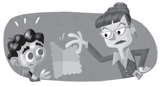 К мальчику неслась женщина в серой рубашке, серых брюках, серых туфлях и серых очках. Её волосы были заплетены в длинную косу, свёрнутую спиралью на голове, точно змея.