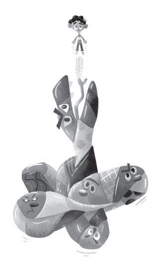 А потом взвился в небо, точно самая громкая на свете подушка-пердушка. На его месте стоял человек с завязанными глазами. В руках он держал длинную острую булавку.