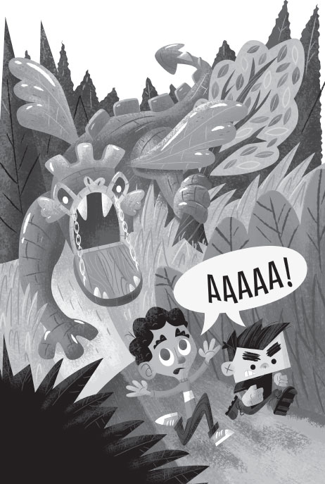 ШШШШШ! Мальчики обернулись. Надувной замок выбросил из себя ноги, руки, крылья и длинный острый хвост. Он превратился в огромного надувного дракона!
