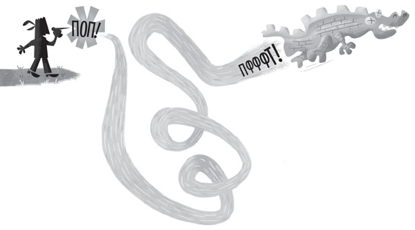 – Я выиграл? – спросил папа Александра и выглянул из-под повязки. – Елки-палки! Даже близко не было!
