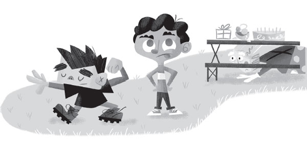 бы сейчас съел кусок торта, сказал Александр.Они вернулись на вечеринку. Папа принялся рассматривать плакат с осликом, а мальчики направились к столу для пикника. Под ним они обнаружили прячущегося клоуна. Его парик-лысина свалился, обнажив копну белоснежных волос.