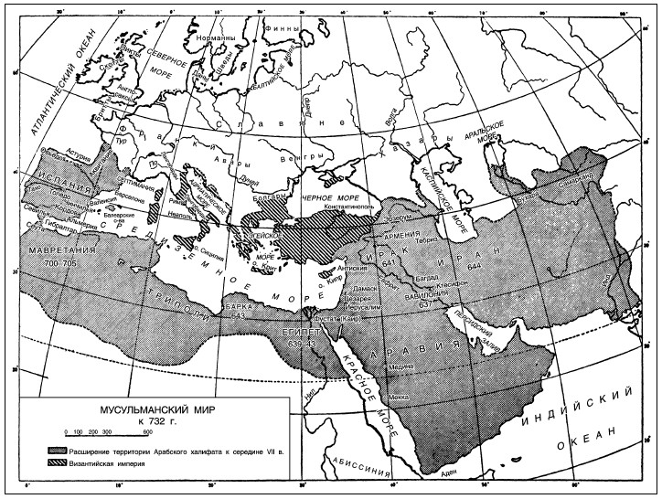 712. Завоевание Синда арабами. Арабское войско под командованием Мухаммада ибн Касима вторгается из Южного Ирана в Синд и, последовательно разгромив в течение двух лет местных правителей, присоединяет к халифату всю нижнюю часть долины Инда. Дальнейшее продвижение мусульман было