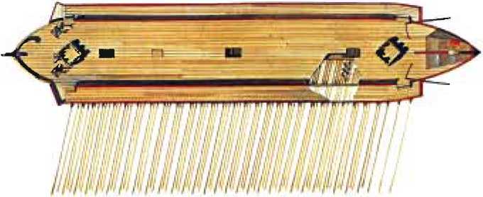 матросы 15-30 морская пехота 200 - 250 Вооружение: 2 боевые башни 2-6 катапульт