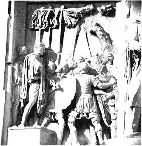 (слева). Триумфальная арка Константина, возведенная в 212 г. н. л. В рельефах арки использованы и юбражения