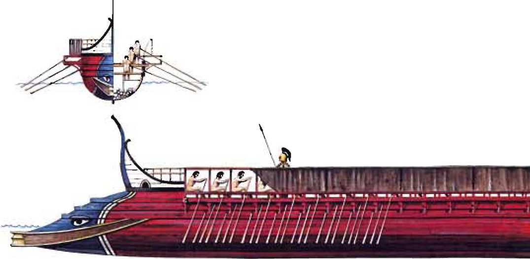 Гребцы не были невольниками, это были хорошо обученные профессионалы из малоимущих слоев населения. Тяжелую пехоту