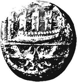 (наверху). На монете изображен финикийский военный корабль примерно 400 г. до н.э . повернутый, очевидно, кормой к берегу.