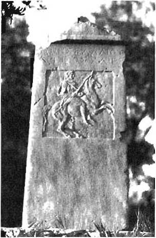 (слева)' Надгробие. датируемое IV и. до н.э. Лаже после Пелопоннесской войны кавалерии все равно шчюльзотиась только как вспомогательное войско, никогда не подходившее вплотную к вражеской тяжелой пехоте.