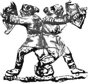 Другим выдающимся военачальником четвертого столетия был Хабрий Афинянин. Он прославился тем, что во время Коринфской войны смог оказать Агссплаю в Беотии серьезное сопротивление. В ожидании атаки противника он приказал своим воинам стать на колено. закрыться щитами и выставить вперед копья. Агесилай гак и нс осмелился пойти в атаку, поразившись столь необычному приему противника. Хабрий. упемчанный за свои подвиги статуей, по его собственной просьбе был изображен опустившимся на колено. Вскоре подобная поза стала общепринятой даже у атлетов.