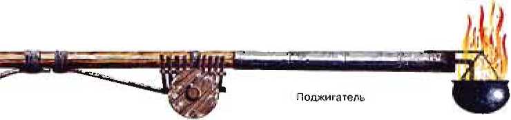 привязывая ее к двум деревянным тележкам, один воин управляя орудием, а другой с помощью мехов поддерживал в ней огонь. Орудие применяли против заграждений, построенных противником.