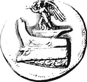 (типу). В .106 г. до н.э. Деметрии Поли-оркет одержал морскую победу над Птолемеем Египетским при Соломине но о. Кипр. На монете, очеканеной в честь иной оипыы, изображена Ника, стояща» на носу корабля.