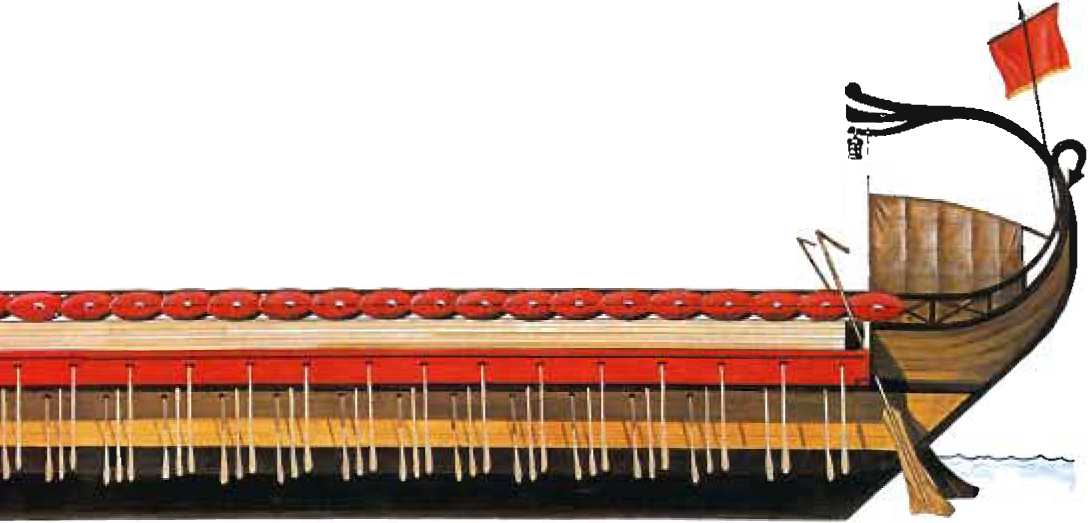 квинкеиремы перешли на систему Деметрия, когда на каждое весло приходилось по 2-3 гребца, а сами гребцы располагались на двух уровнях. И Рим, и Карфаген также использовали «тройки», «четверки» и «шестерки».