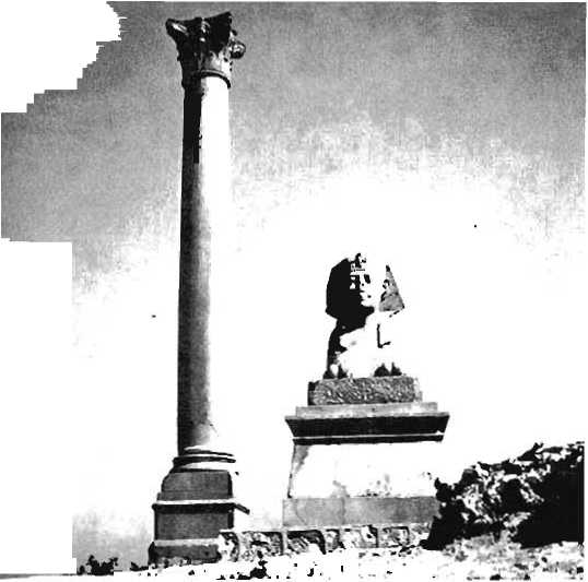 (наверху). Столб Помпея стоит а самой высокой точке Александрии. Несмотря на то что столб посвяшен Диокле-тит, он напоминает нам. что Помпей умер в Египте и что он был установлен. чтобы отметите место его захоронения.