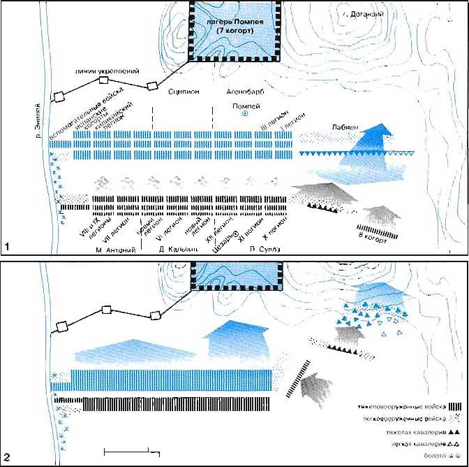 2 Восемь когорт атакуют фланг войска Помпея, и обстоятельствами, и ему нс требовалось быть долговечным. Другие войска были также оставлены осаждать Массилню с суши.