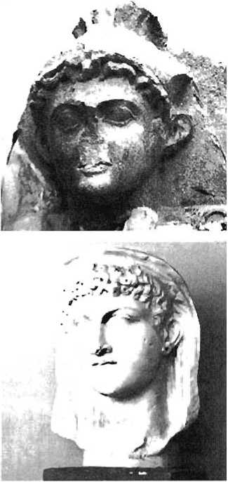 (справа). Статуя Августа а военном облачении, найденная в Риме. Император одет в металлическую кирасу. Портретные статуи назывались лорикатами или штатами в зависимости от тога, в военное или в штатское платье был облачен изобразкаемый деятель.
