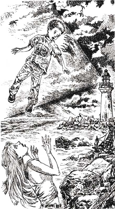 И сама уже бежала к брату. Но свет был быстрее ее. Прежде чем она успела добежать до мола, Нейл поднялся в воздух. Несколько секунд он парил над насыпью и водой. Неведомая сила тянула его за волосы. В глазах его был ужас.