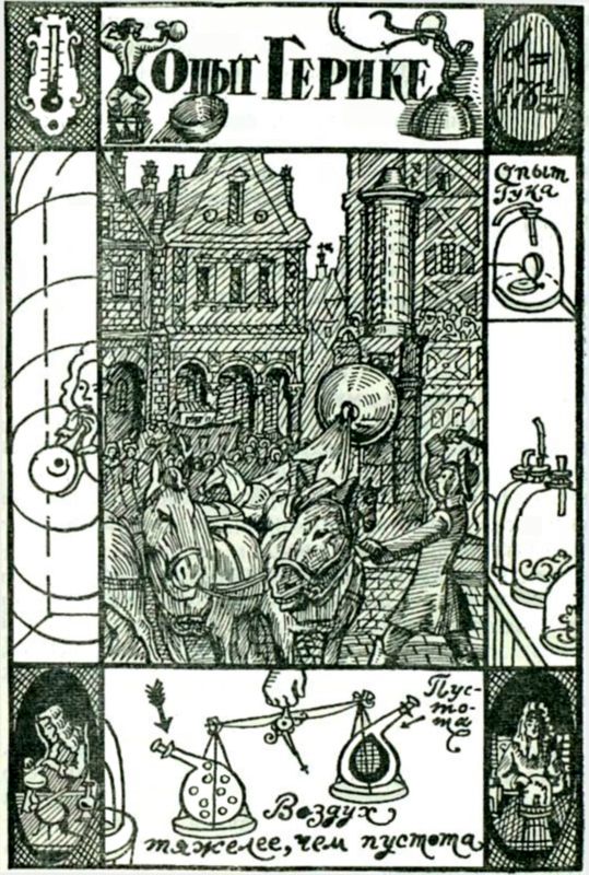 Немецкий ученый фон Герике — бургомистр города Магдебурга — одним из первых в мире занялся изучением пустоты и ее неведомой еще силы. Он не считал это забавой или ненужным занятием. Ученый заказал мастерам большие медные полушария. Составил их вместе, а затем попытался с помощью насоса выкачать оттуда воздух. До этого опыта Герике магдебургские — так их назвали — полушария легко разъединялись руками, ну совсем как половинки спелого яблока. А теперь когда воздух из них по возможности выкачали, отделить одно полушарие от другого не смог даже самый сильный в Магдебурге человек. Он успешно выступал в местном балагане и легко поднимал на доске десять магдебургцев. Силач долго пыхтел над полушариями и наконец поднял вверх свою рукавицу, как бы признавая поражение.