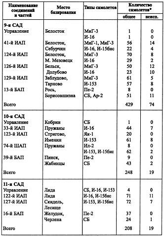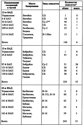 Таблица 11. Боевой состав ВВС Западного военного округа по состоянию на 1 июня 1941 года.