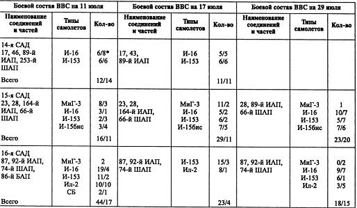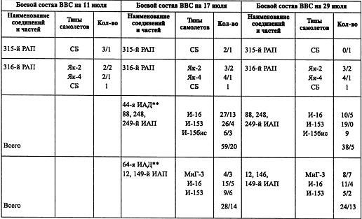 **Эти соединения и части были переданы ВВС 6-й армии Юго-Западного фронта из состава Южного фронта.