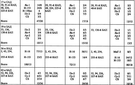*В числителе указано количество исправных боевых самолетов, а в знаменателе — неисправных.